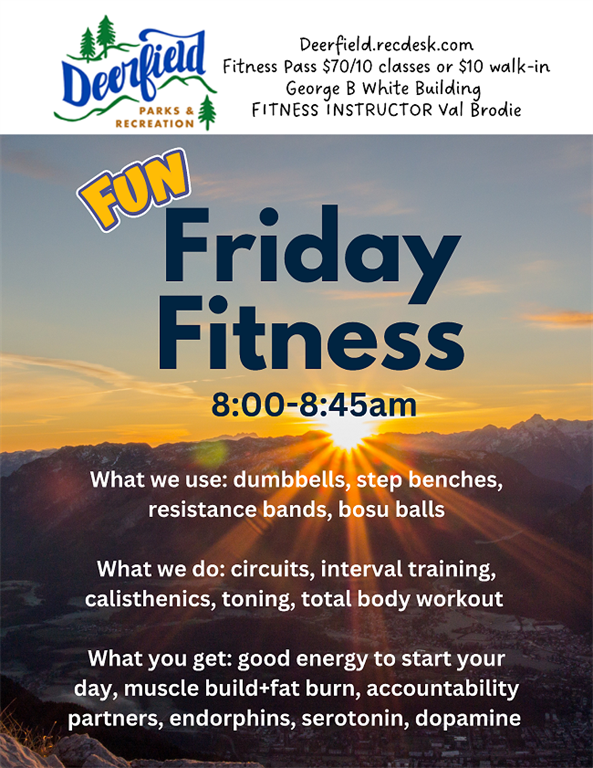 Formerly known as Bootcamp, Fitness with Val is back with a new name and updated time. Join us for Fun Friday Fitness from 8:00–8:45 AM at the George B. White Building.